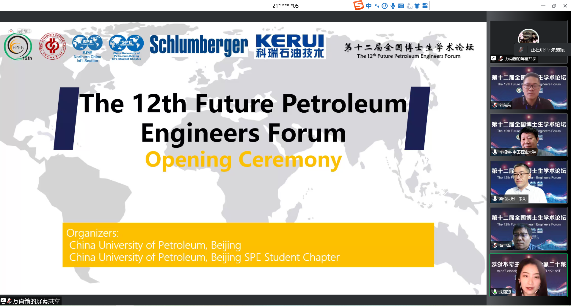5月28日上午,第十二届全国博士生学术论坛在线开幕。中国免费靠逼视频(北京)副校长李根生,国际石油工程师协会中国北方分会主席周东波,斯伦贝谢数字与一体化集团总经理朱明,山东科瑞油田服务集团人力资源总监贾小涛、董秘办主任李小军,山东科瑞石油技术有限公司油藏工程所所长黄咏梅、采油工程所工程师丁国,中石大学生工作处及石油工程学院相关负责人等参加开幕式。