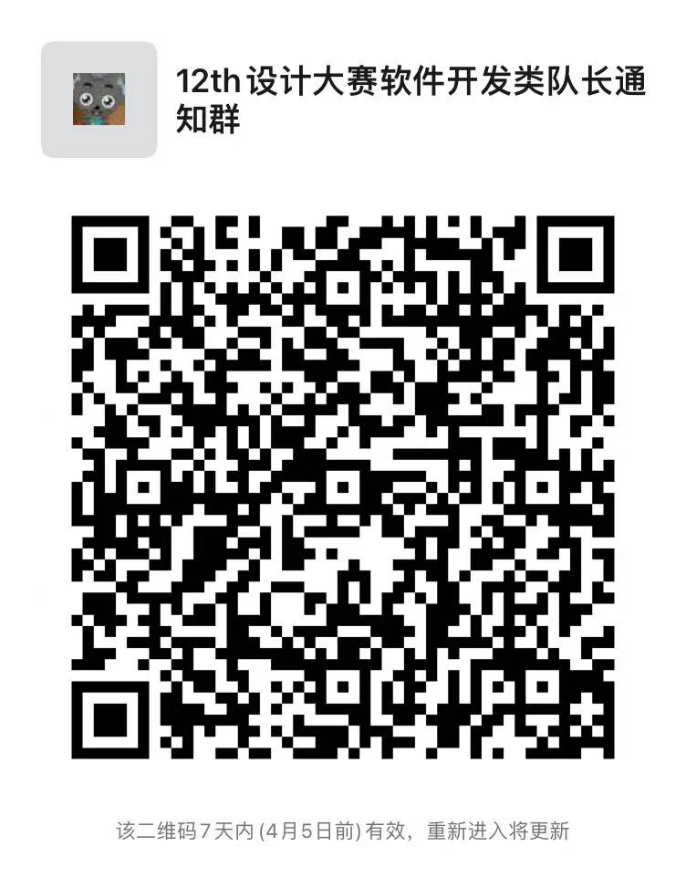5.请各队队长扫码加入工作通知群,后续软件开发类相关通知除在大赛官网、官微等平台发布外,也将同步在微信群内通知,工作群二维码详见附件2。